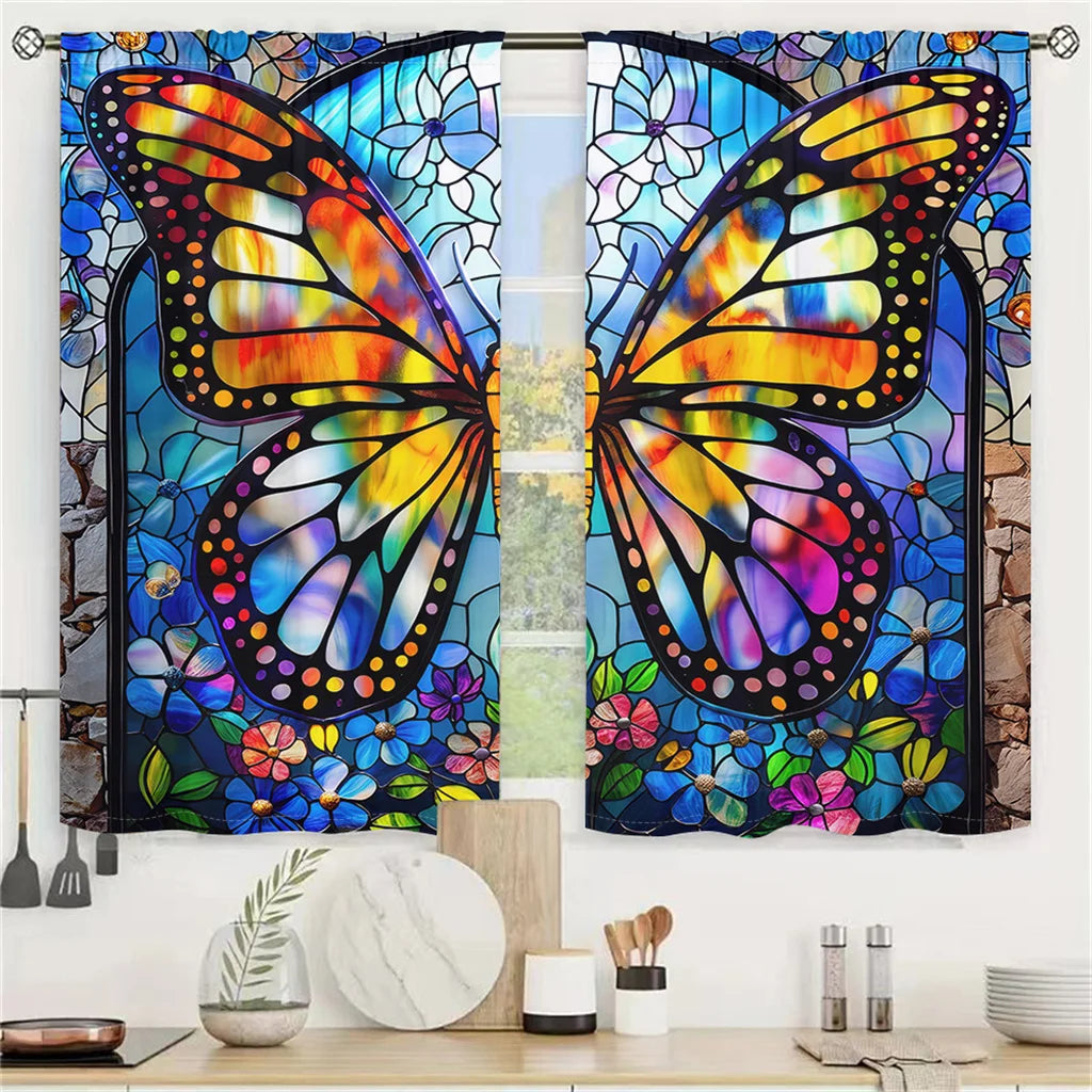 2Pcs Butterfly Painting Curtains - Colorful Pattern Living Room - Bedroom
