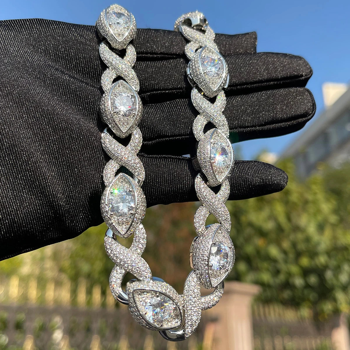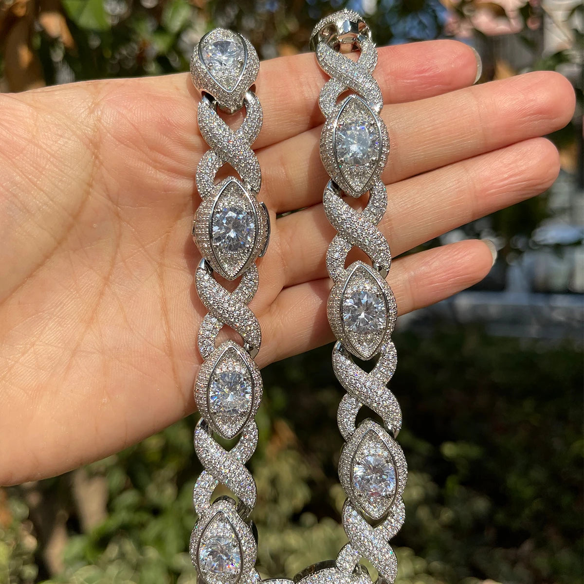 Bubble Letter Iced Out Choker Shape 8 Eye Cuban Chain for Men Prong Setting Necklace Hip Hop Jewelry