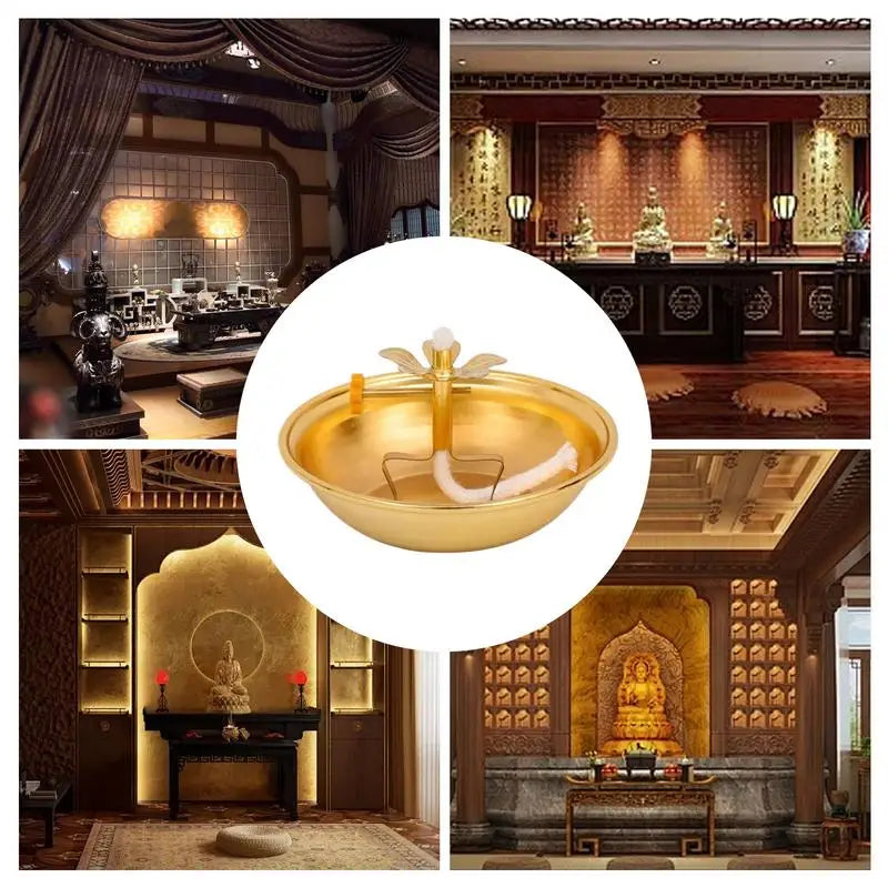 Exquisite craftsmanship and sturdy alloy material ensure stability of the oil lamp. Adjust the light intensity to enhance aesthetics according to temple lighting. Add beauty and serenity to your spiritual space.