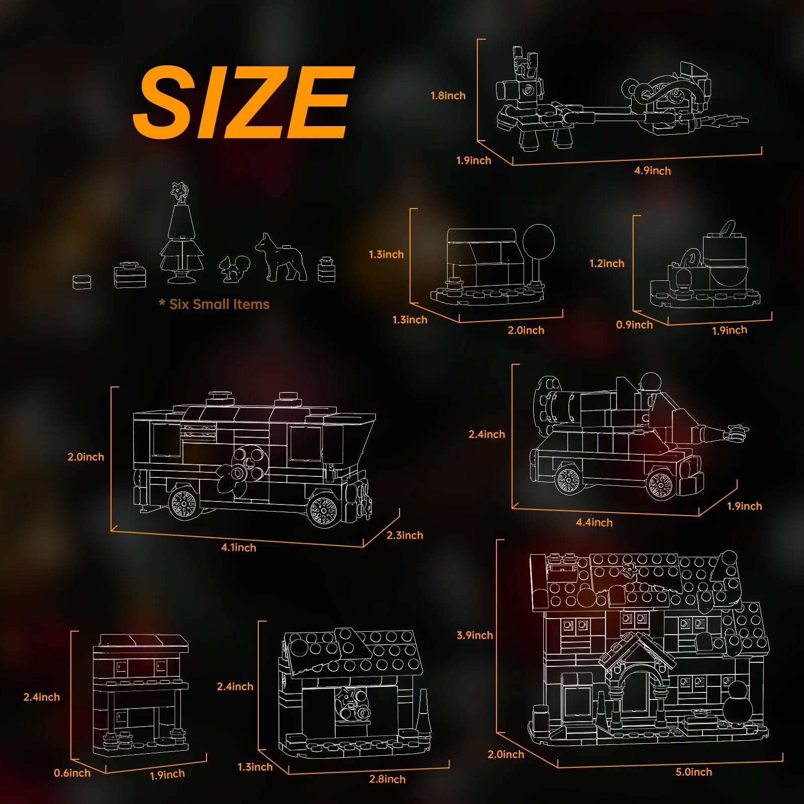 【Classical Christmas Holiday Set】This Advent Calendar set, inspired by a Christmas blockbuster film, perfectly recreates the main house, garage, neighbor’s house, glowing bulb heap, dumpster, and reindeer-drawn sleigh, also two mini vehicles—Christmas tree-laden car and cousin’s RV—making us immersing in the movie’s magic, blending holiday cheer with nostalgic wonder