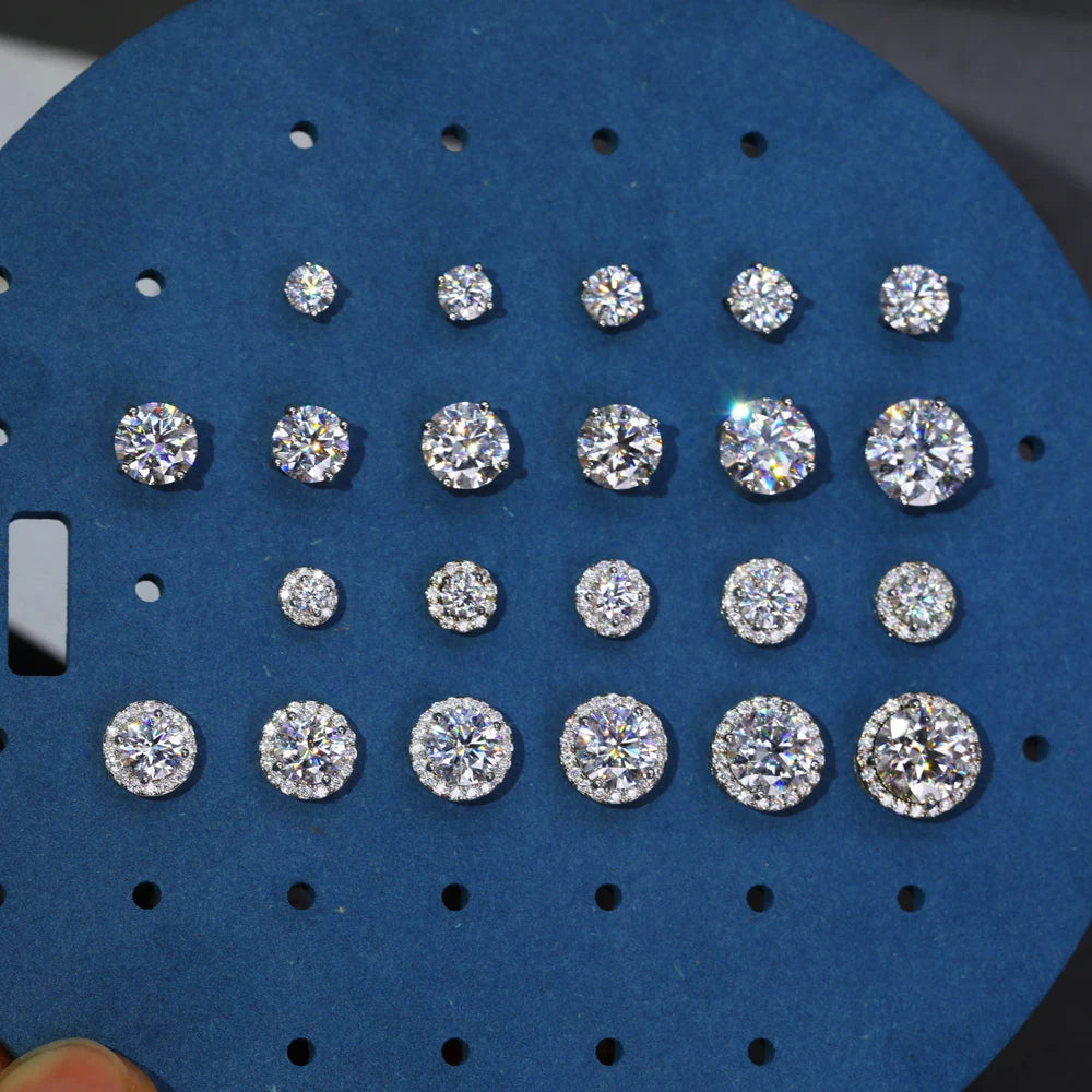 Classic Fashion Real Moissanite Stud Earrings For Women. Sterling Silver Sparkling Engagement & Wedding Gifts