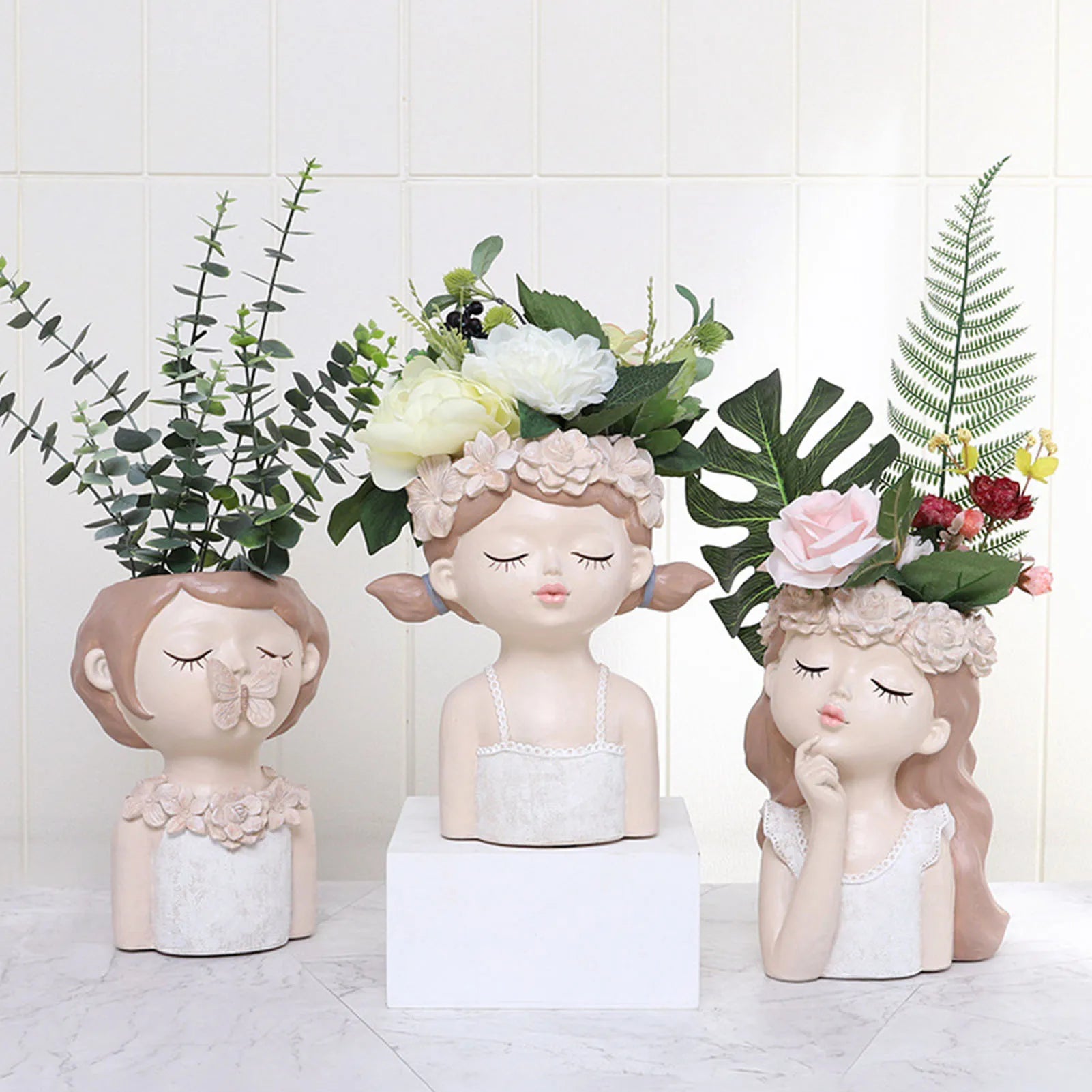 2、Vibrant Colors: Girl Succulent Plant Flower Pot is made of high-quality resin, with painted surface patterns, beautiful shapes, realistic images, and bright colors. Cute Succulent Pots don't break easily.