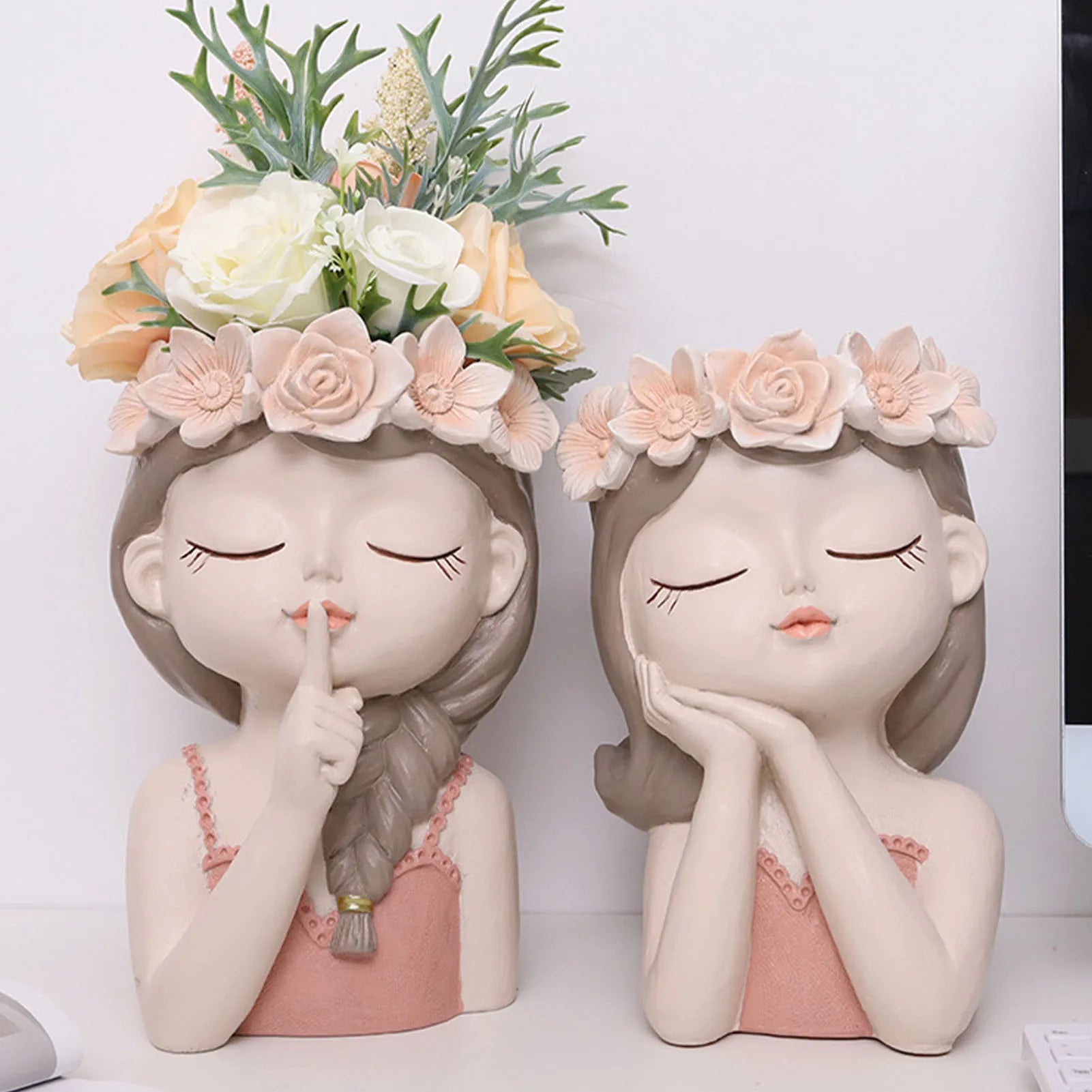 2、Vibrant Colors: Girl Succulent Plant Flower Pot is made of high-quality resin, with painted surface patterns, beautiful shapes, realistic Bullet Points: