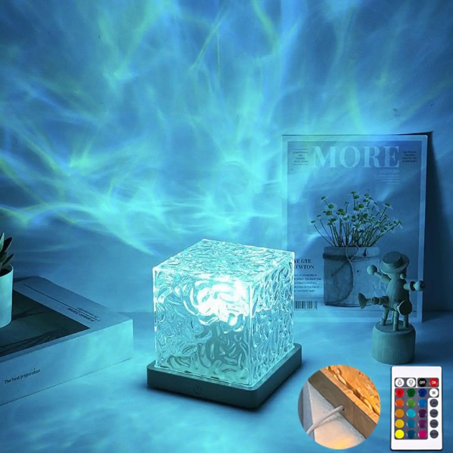 Cube, Lamp, 16 Colors Light Projector, Glow Lamp, - Water Wave Effect - Night Light with Remote Control Power