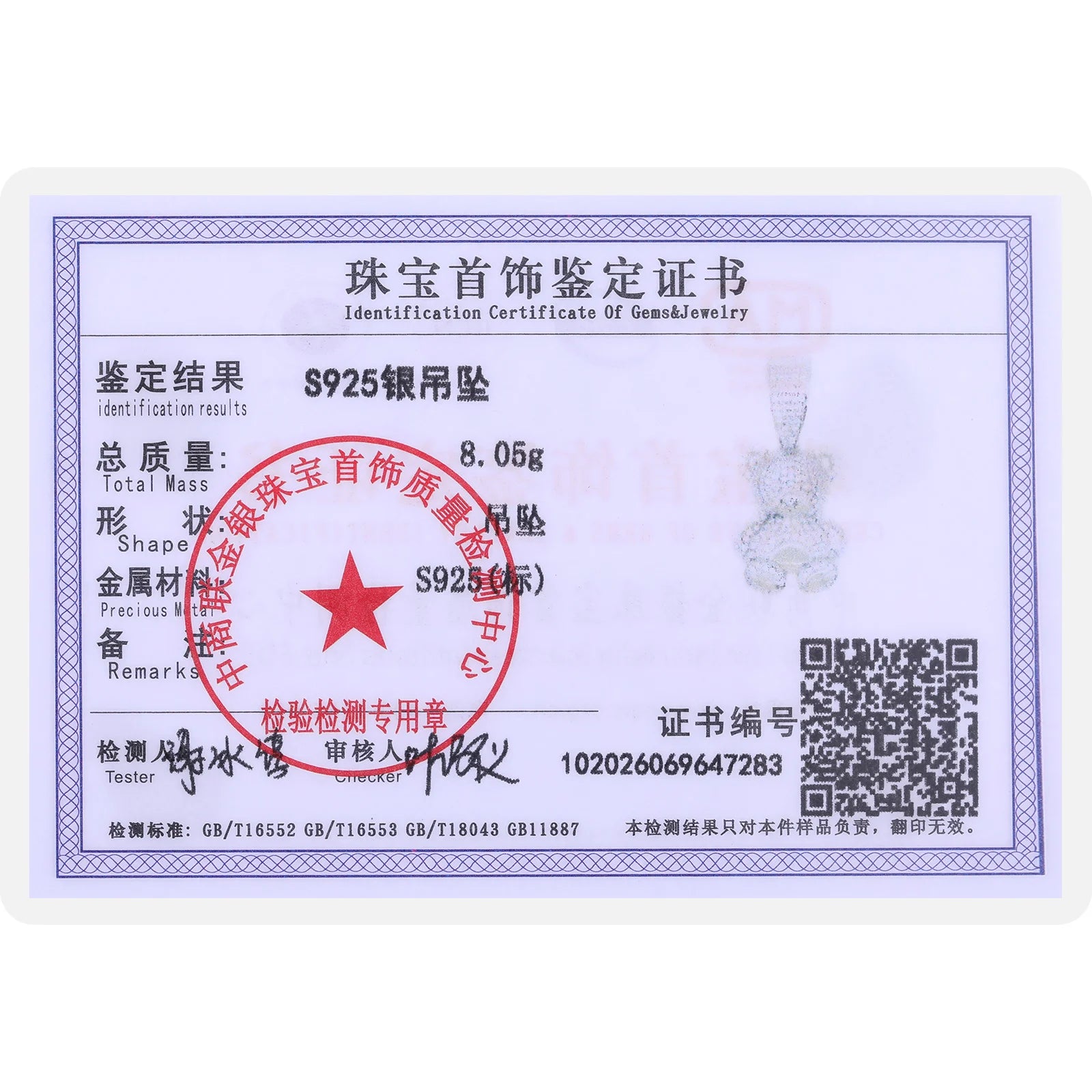 Exquisite Moissanite Fashion Bear Pendant Necklace