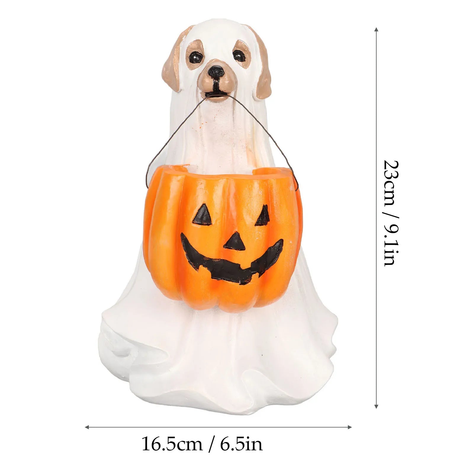 Halloween Ghost Dog Statue Resin Pumpkin Dog - Cute Spooky Ghost Dog Figurine for Indoor Outdoor