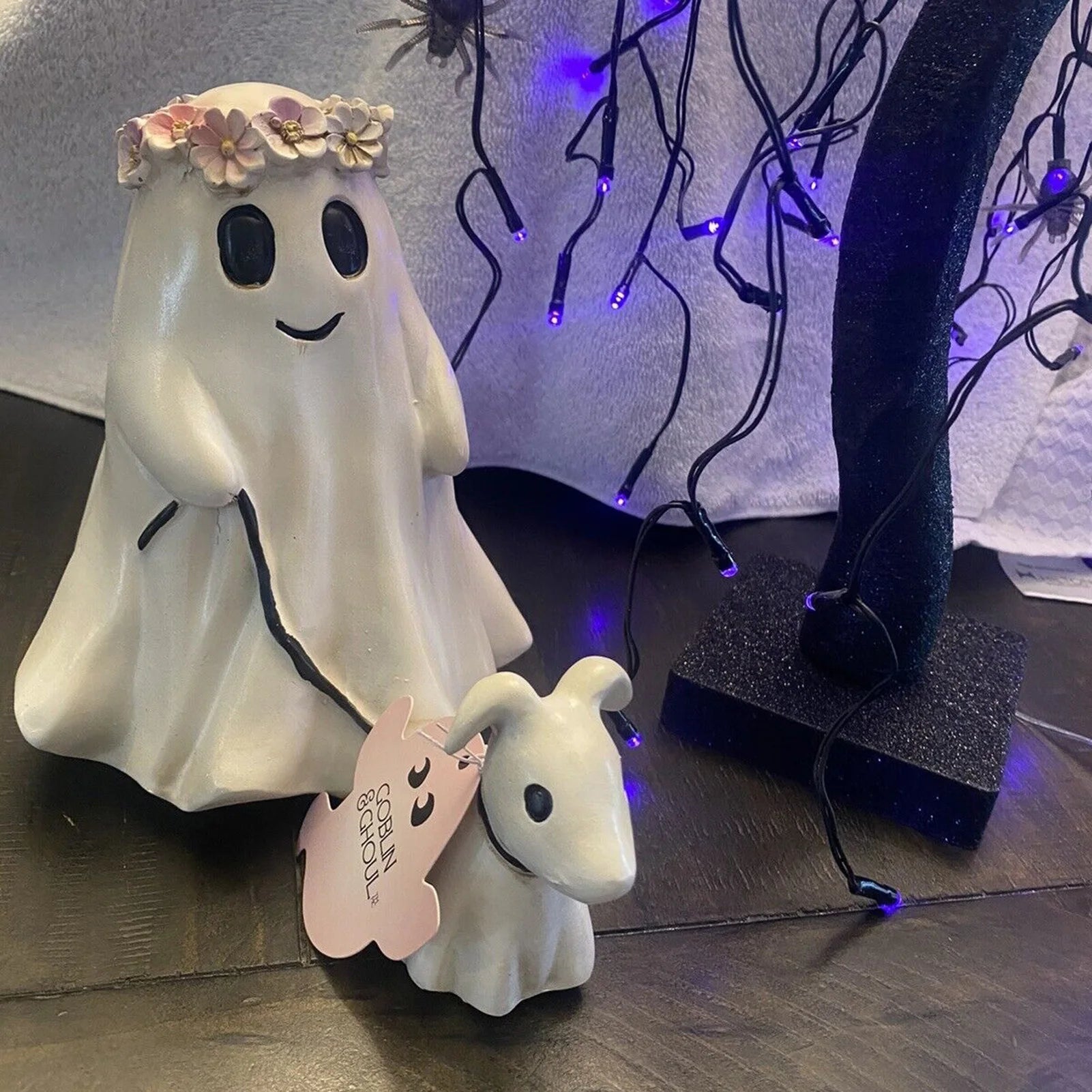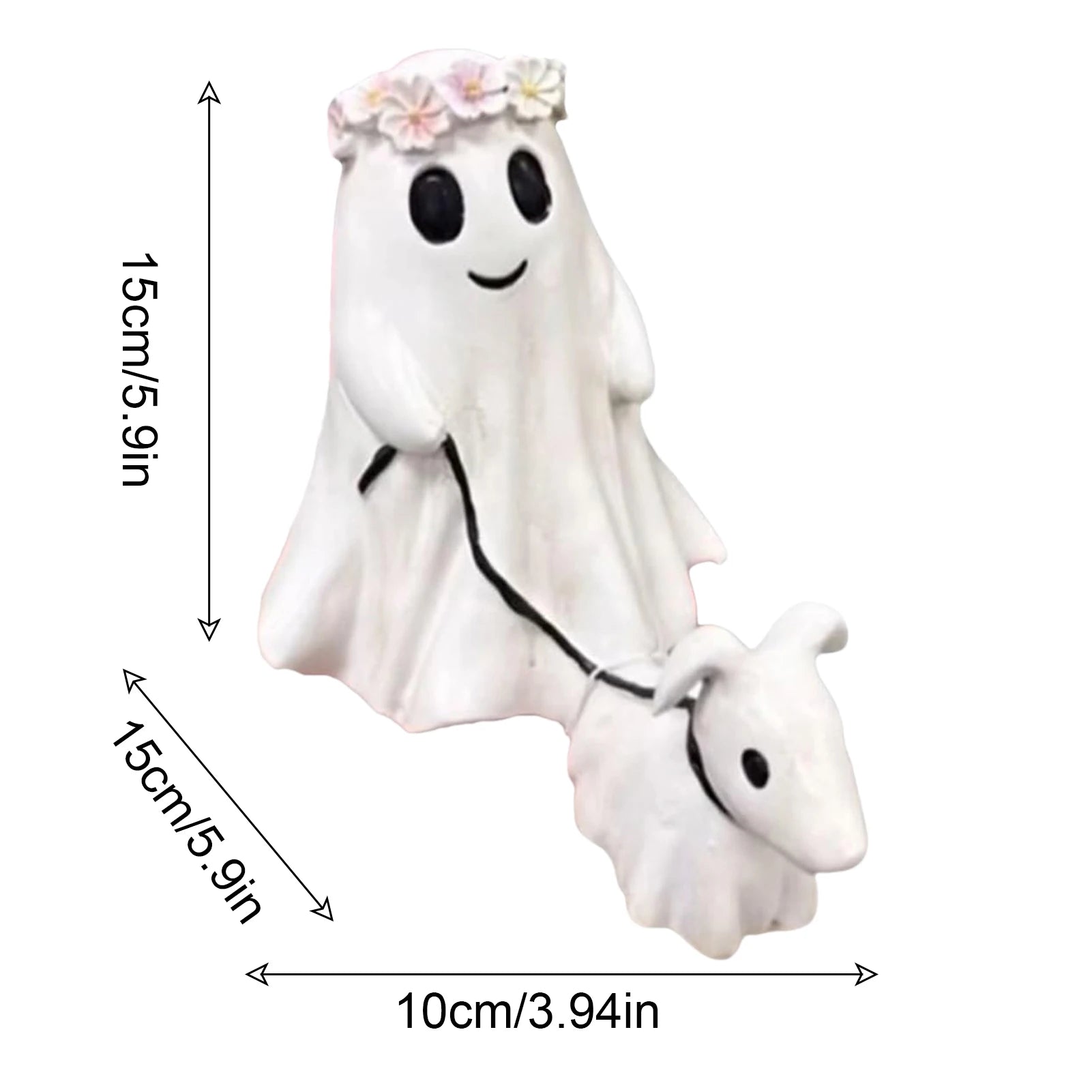 Creative Spooky Twist: Featuring a ghost walking his ghost dog, this statue adds a cute and spooky touch to your decor, making it a unique opening remarks.