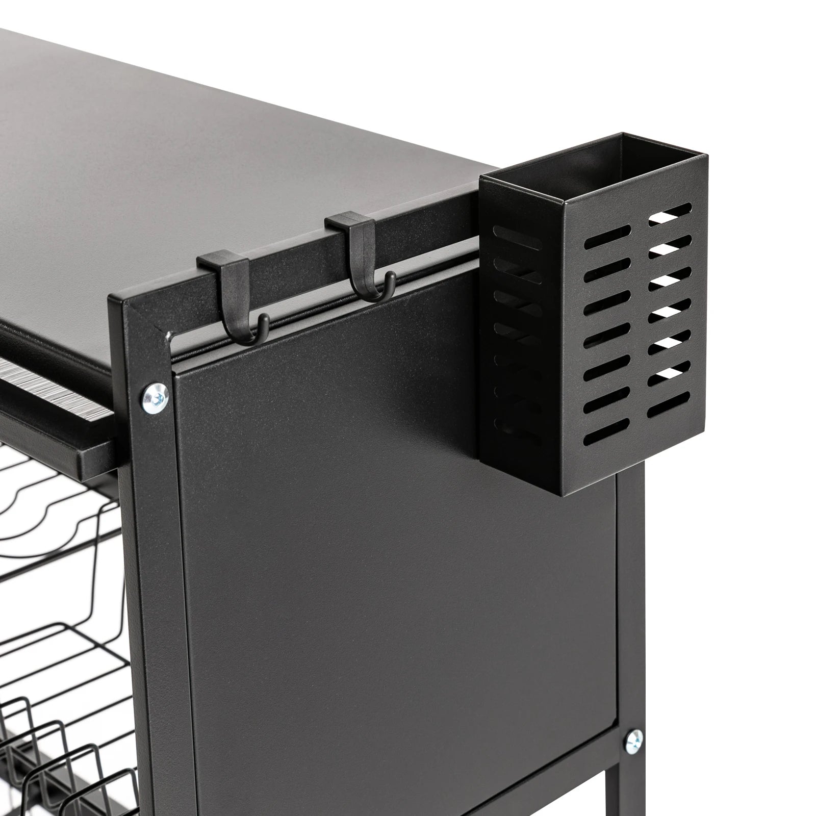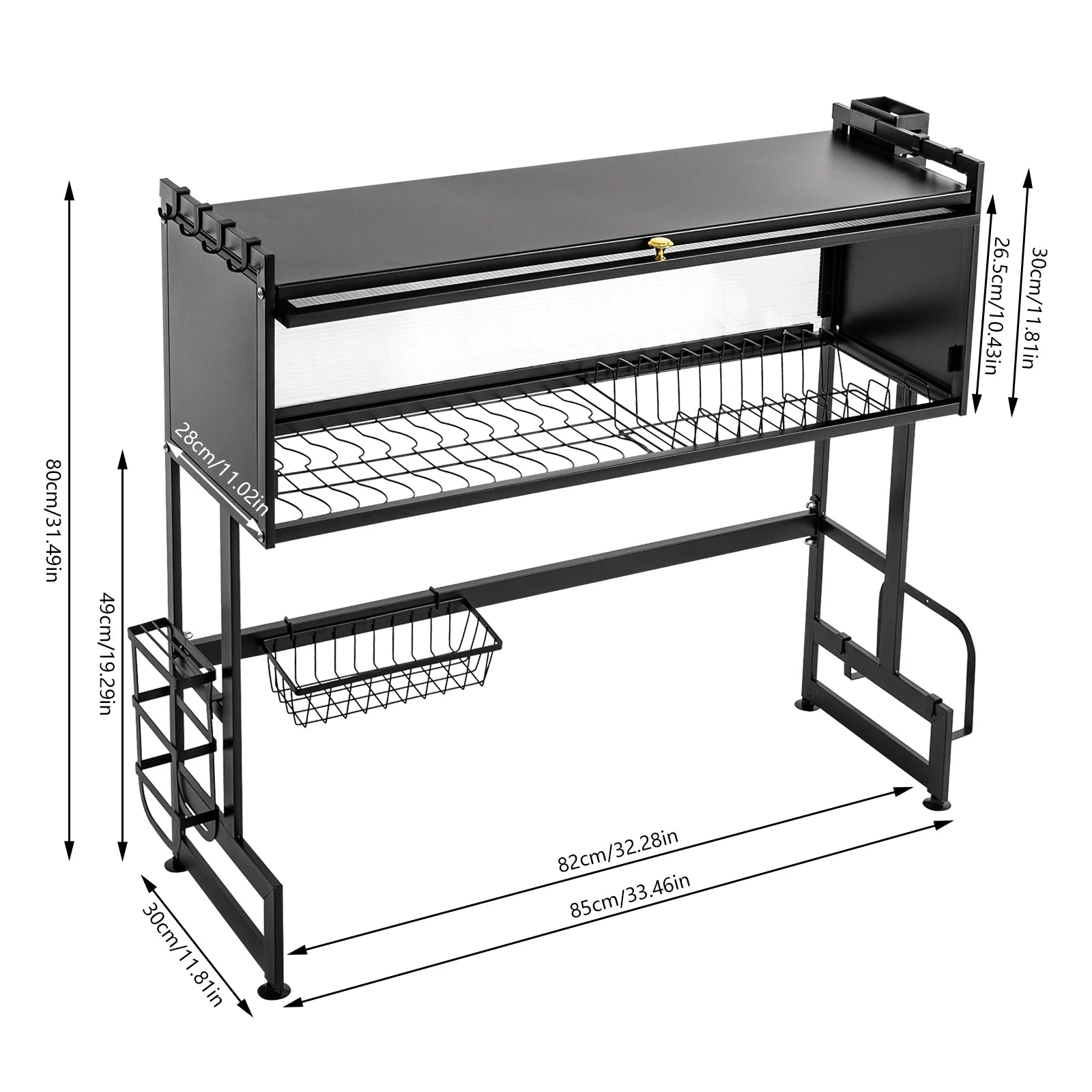 The dish drainer is made of selected carbon steel, with a unique baking process, which can provide great storage for dishes, safe and reliable. It has a good ventilation system and a wide capacity, which can achieve the ideal draining effect in a shorter time. Meanwhile, we have designed delicate and practical storage systems such as a knife holder, chopping board holder, and chopstick holder for you, which can effectively organize your kitchen space.