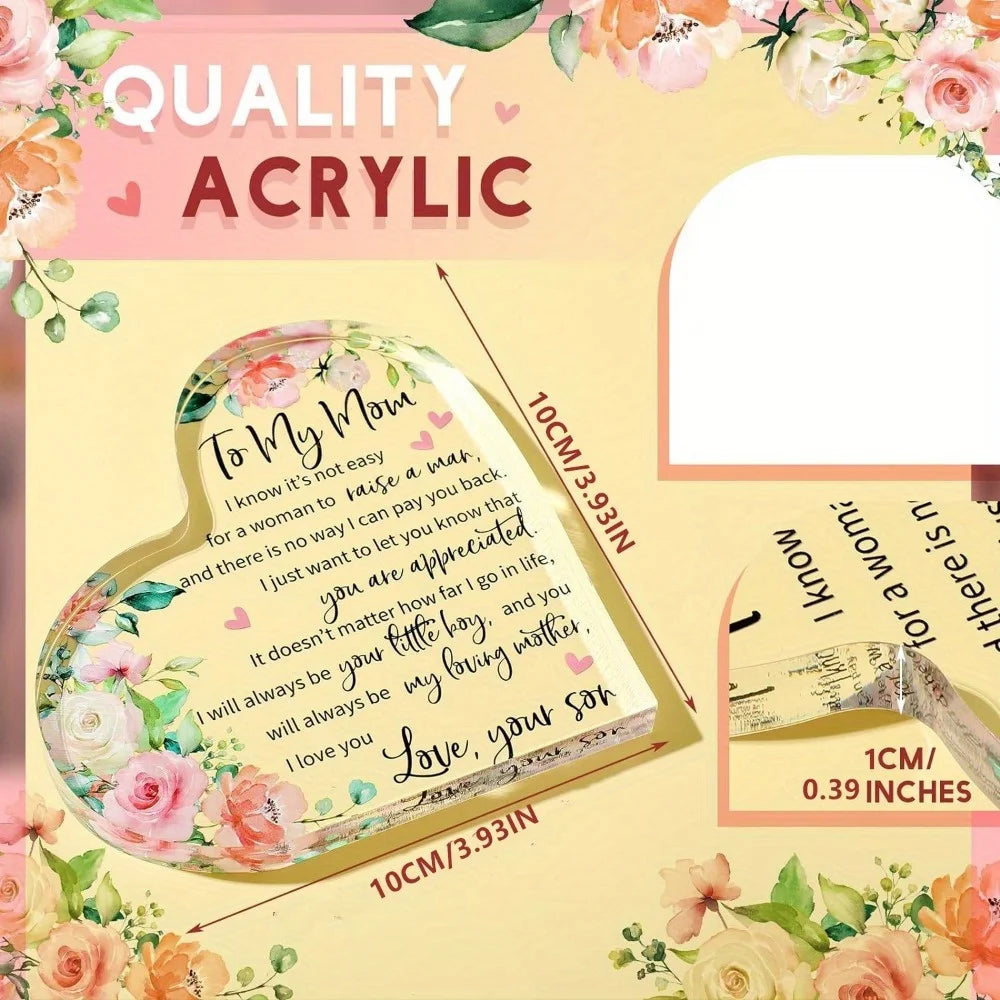Mom Acrylic Heart Plaque: Birthday/Mother's Day/Christmas/Valentine's Gift from Son/Daughter.