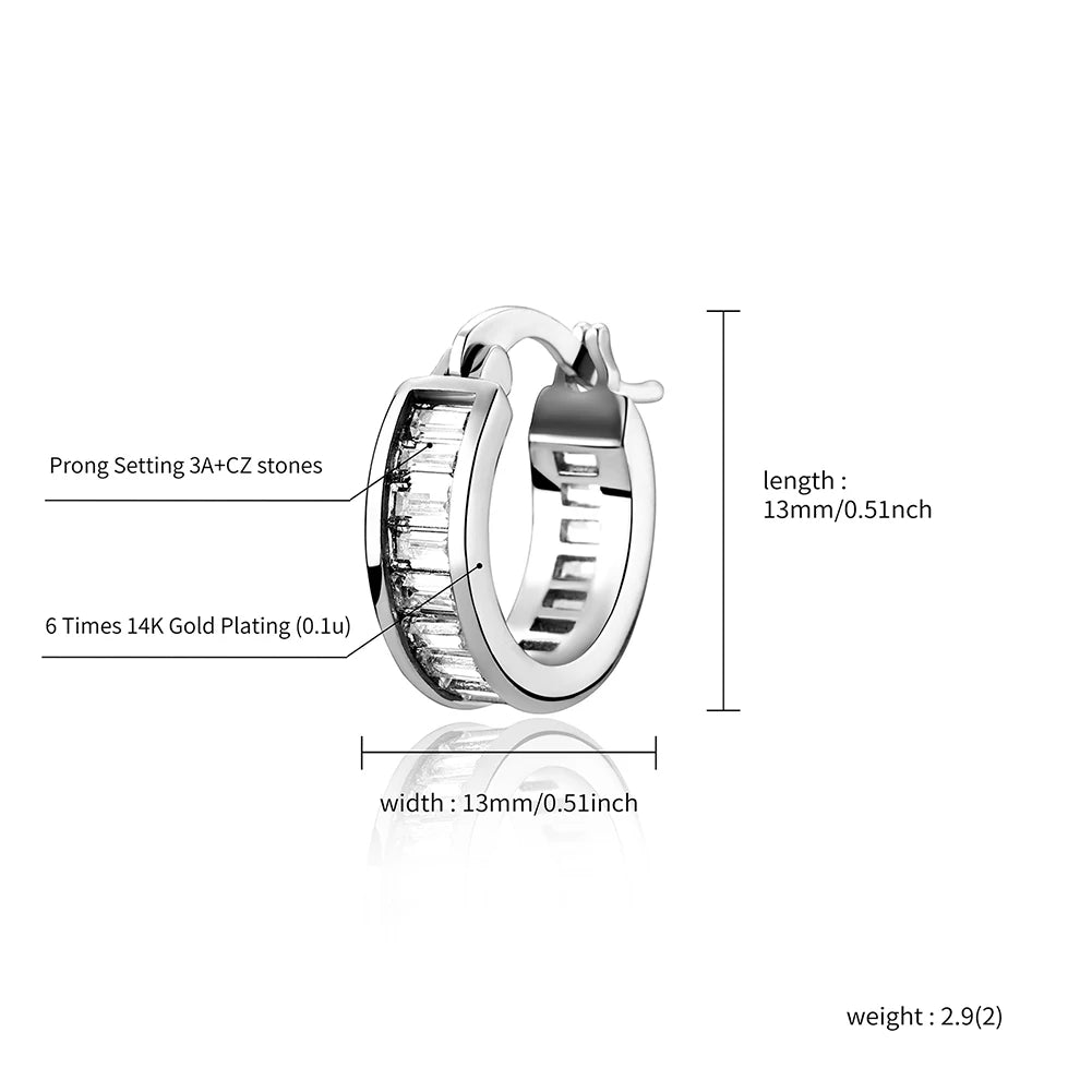 New Baguette Zircon Hoop Earrings - Gold Plated Iced Out CZ Earrings