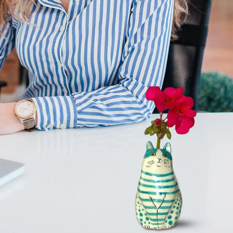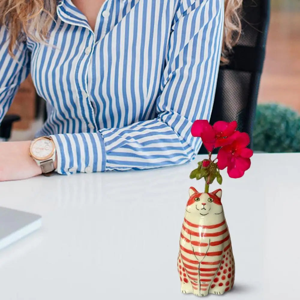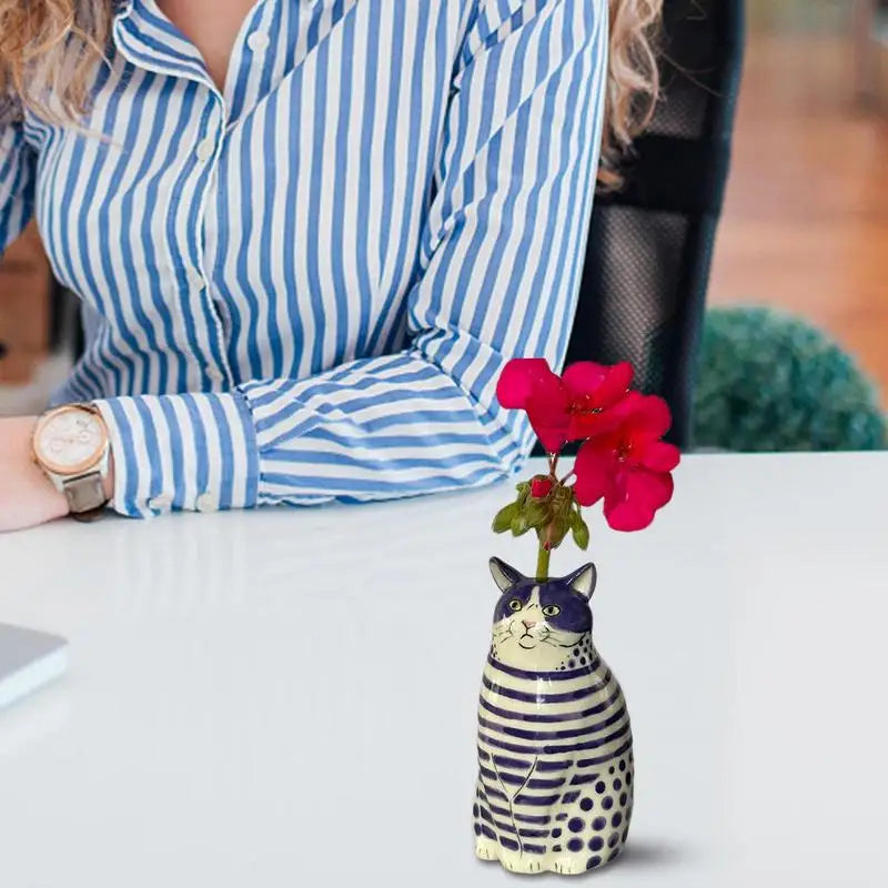 This polka dot cat flower vase decor is a unique work of art in a cat shape that brings nature into your home decor. Use it for hallways, desks, bookshelves, tables or shelves. It's the perfect gift for cat lovers who appreciate stylish home accessories.