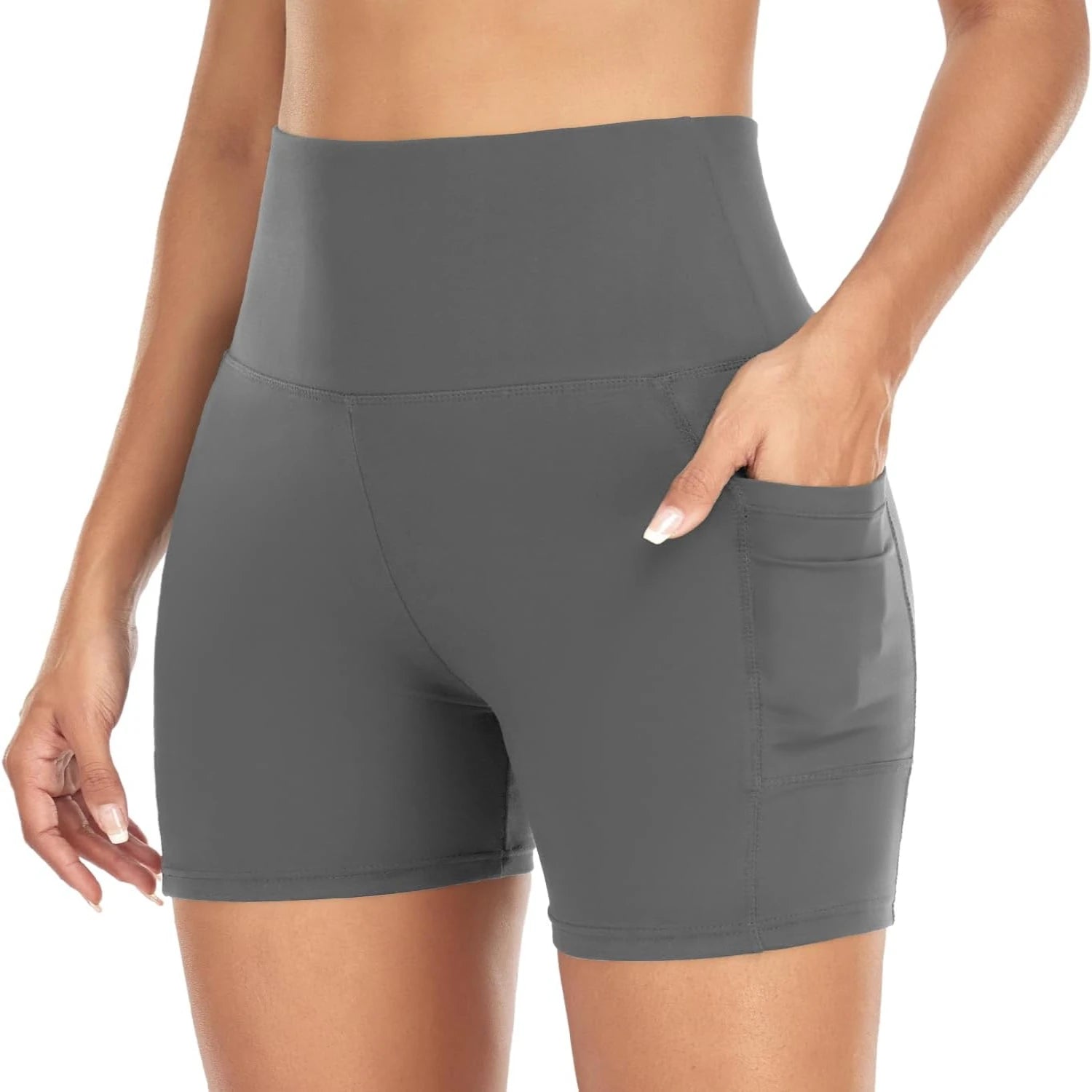 1. Elevate your workout wardrobe with these stylish, functional, and premium high-waisted tummy-control spandex biker shorts for women. Perfect for yoga, running, and all your athletic activities, these shorts are enhanced with convenient storage pockets for added practicality.