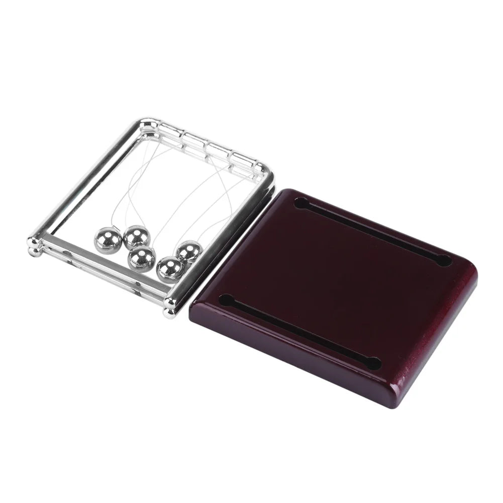 Not only demonstrates a pendulum, but also shows the Laws about conservation of Momentum and Energy.