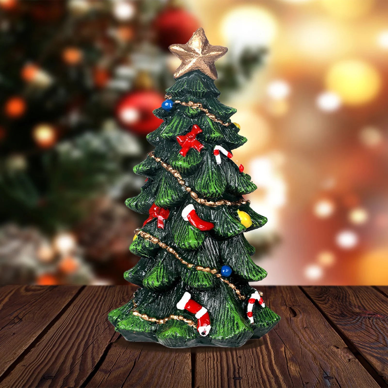 Eye-catching Resin Tabletop Christmas Tree Figurine: This beautifully crafted resin tabletop Christmas tree figurine adds a festive touch to any space. Its intricate details and vibrant colors make it a standout decoration for your holiday home or office.