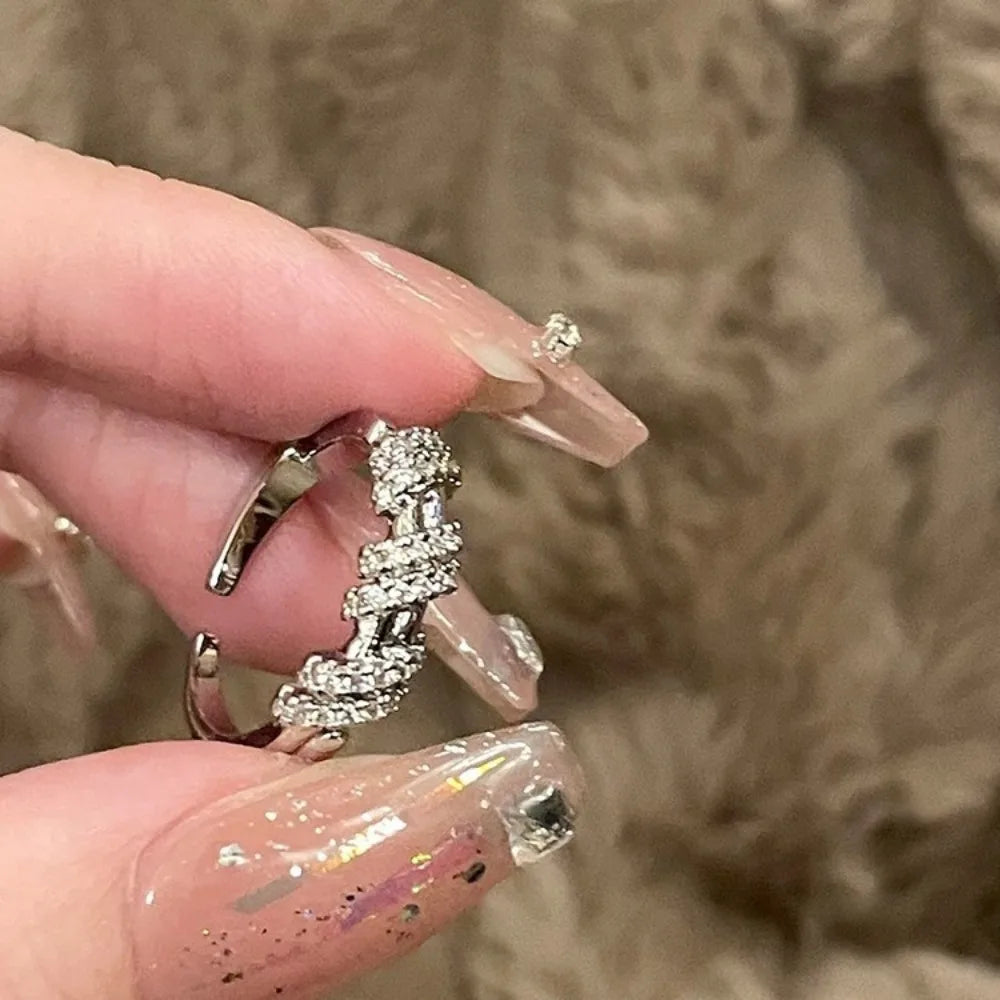 Vintage Wrap Adjustable Ring Silver Plated Cubic Zirconia - Elegant Stacking Ring for Women