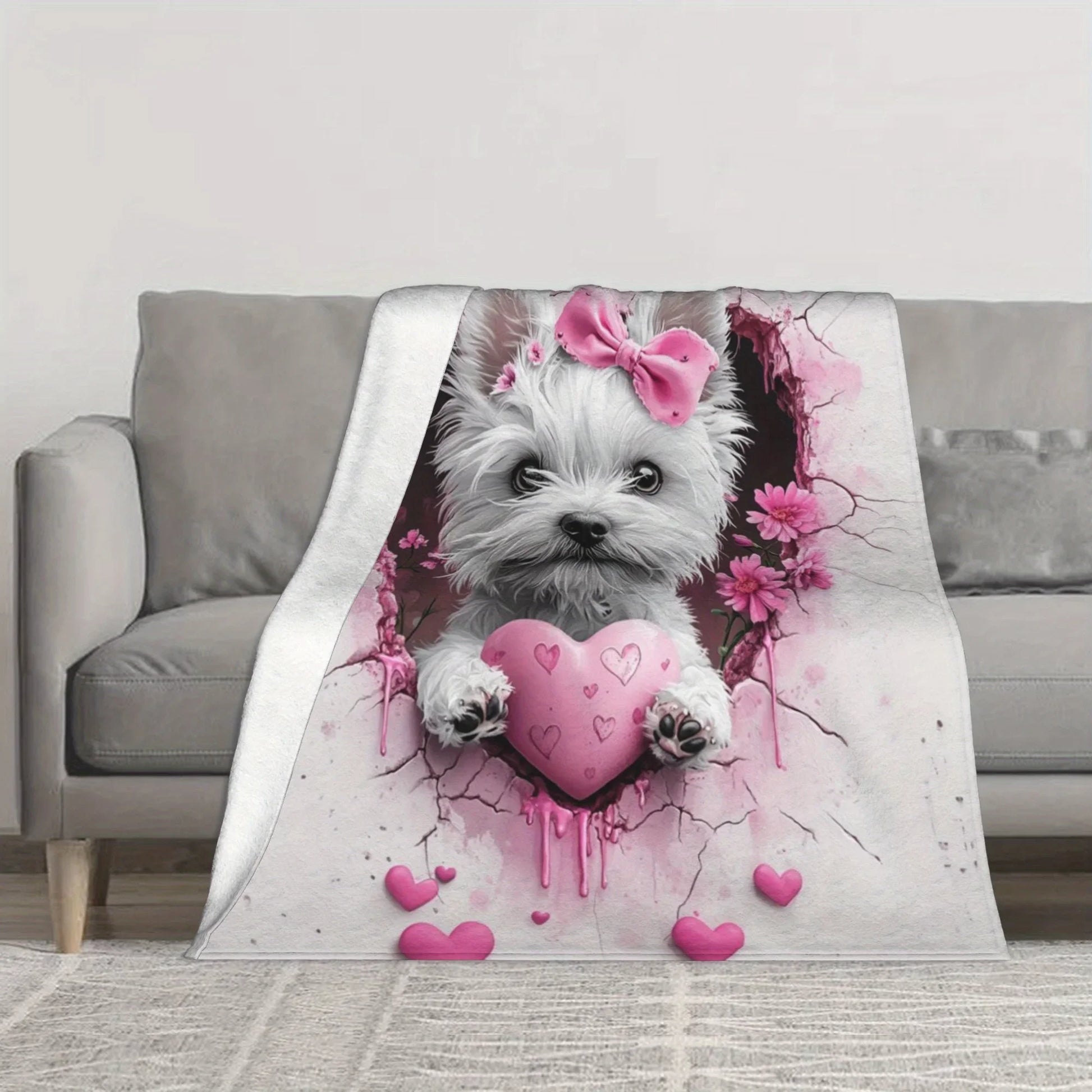 West Highland White Terrier Dog - Pink Floral Heart - Soft and Cozy Novelty Fleece Blanket