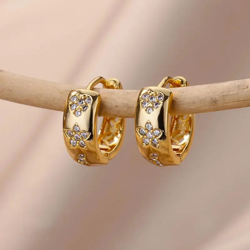 Zircon Star Earring For Women Girl Stainless Steel Hoop Piercing Earring y2k 2024 New Jewelry Accessories Gift aretes